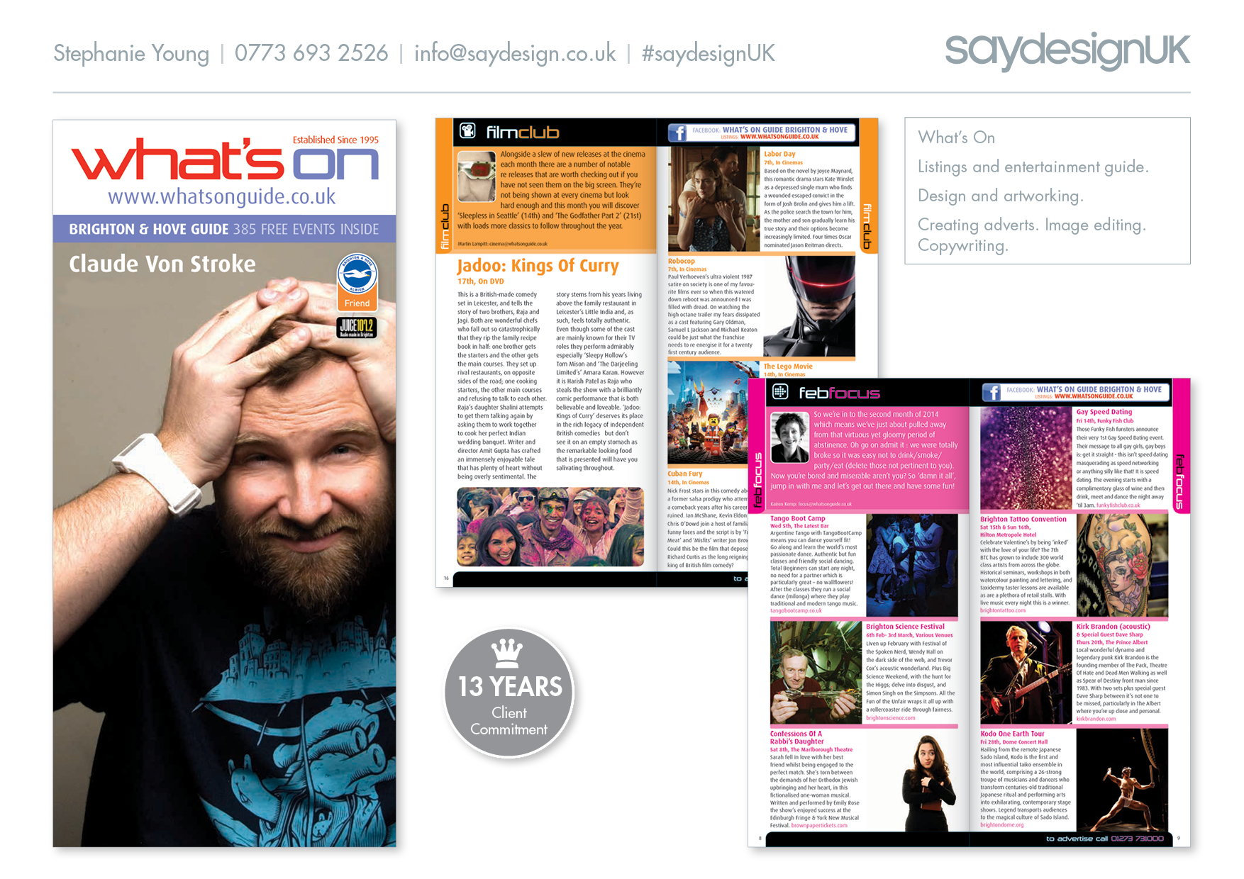 There are many forms of publishing – magazines, brochures, event guides, catalogues and everything in-between. Why just have print or digital when you can have both for in-hand, email or download? Contact saydesignUK today to represent your business professionally.